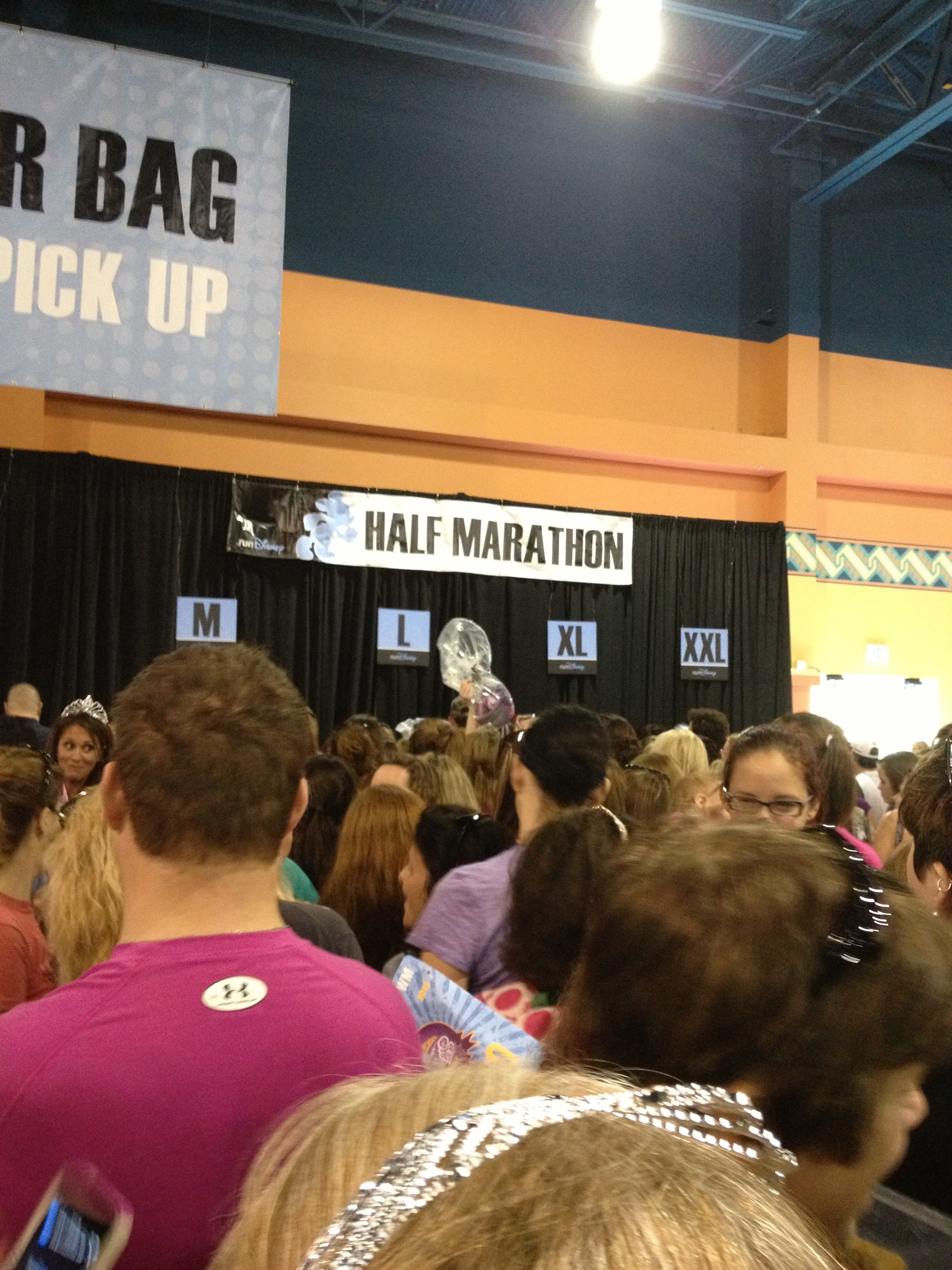 There was confusion when entering the expo due to three lines being formed and different explanations of what the lines were for. I was told two lines where for Packet Pick-Up and one line was for the New Balance runDisney tennis shoes. I made my way over to the New Balance line and waited. We were walked into the expo and formed a line outside of the New Balance booth. The line was moving slowly due to the registers not connecting to the internet at first. An employee stated there would be two pair limit per person. As I moved closer to the entrance of the booth, the same employee was counting people in line and asking how many pairs a person was going to purchase. That made me nervous and I crossed my fingers my size would be available. I think I waited a little over an hour for my chance to step into the New Balance booth for my shoes. Due to me being a Mickey Mouse fan, I wanted the men’s shoe. I had gone to a sport store before the expo to try on a pair of New Balance in order for me to have a general idea of my size. I would take a 7 in a man’s size but the smallest they had was 7 ½. The 7 ½ fit due to the shoes running small. With my tennis shoes in hand and $124.99 (before tax) later, I was skipping to get my race bib.
