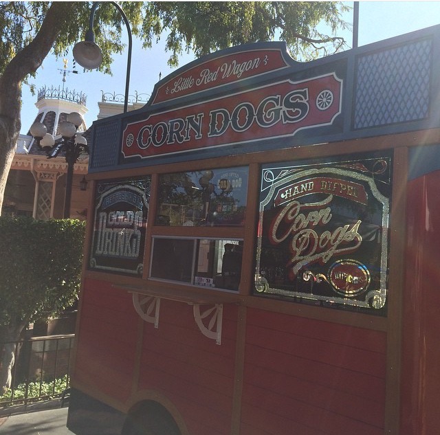 As far as a full meal, I love Boma in the Animal Kingdom Lodge; so many things to choose from! I have only been to Disneyland once and I set up shop next to the Little Red Wagon to eat corn dogs. I think I had 3 in about 24 hours. Well, it was really less than three…I bought one the first day and my toddler wanted to help me eat just the hot dog portion so when I went back the next day I bought two, so we could both get full. He ended up eating his hot dog (tearing off the breaded part) and part of my hot dog. Hopefully, the next time we go back he would have started to appreciated corn dogs, because they are delicious!