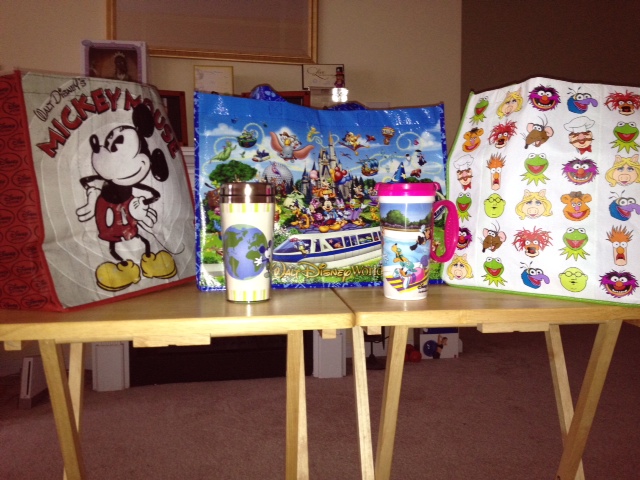 As you can see below I have several Disney reusable bags and mugs. I can do more by recycling newspapers and plastic bottles when I have them. What more can you do for the Earth beyond today? The small things of fixing dripping faucets or using cloth napkins instead of paper towels can assist in making our resources last longer. I am very aware that I need to reuse more and waste less.