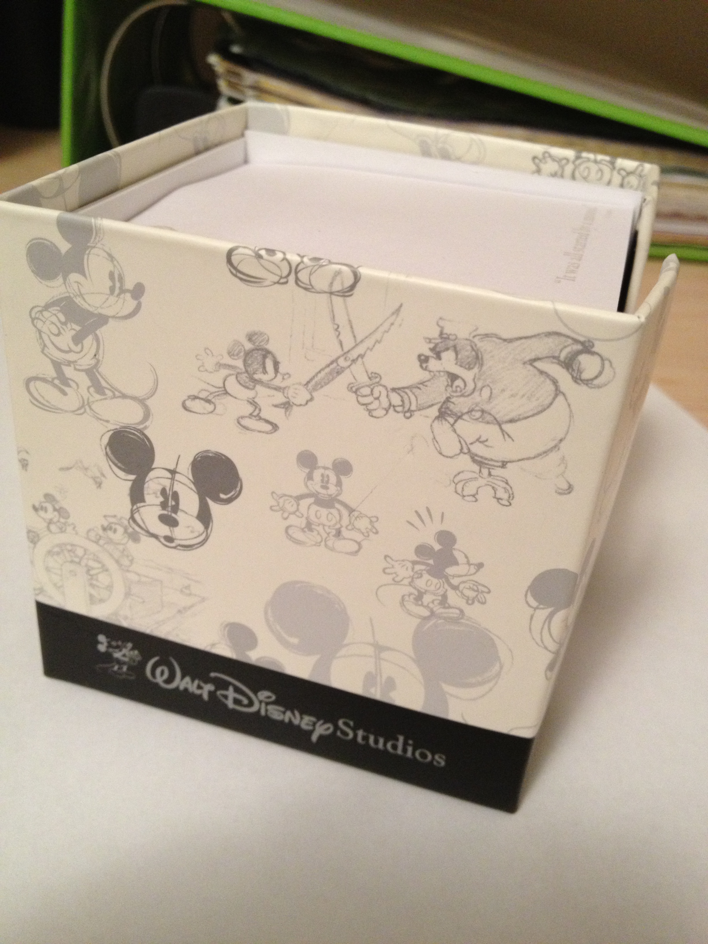 Today’s fabulous find is the Walt Disney Studios Mickey Mouse Notepad Set found at DisneyStore.com. Due to a small touch of OCD when it comes to organizing, I love sticky notes. So of course, I would have to have Mickey Mouse sticky notes. The set consists of 3 pads with different Mickey Mouse designs with the quote “”It was all started by a mouse.” on the bottom of every sheet. The notepad set retails for $14.50.