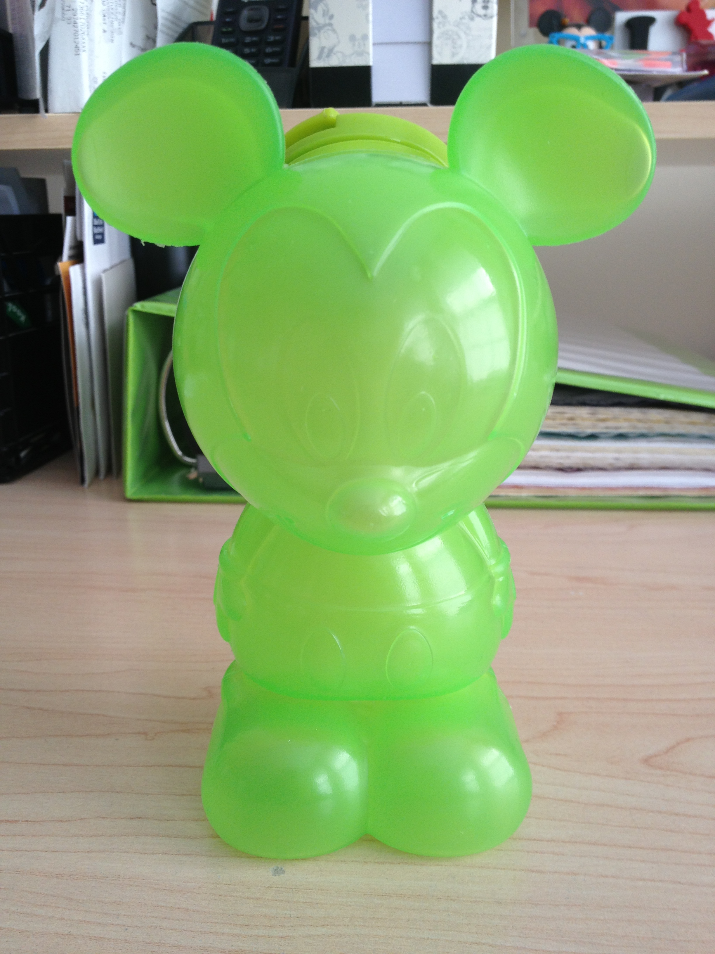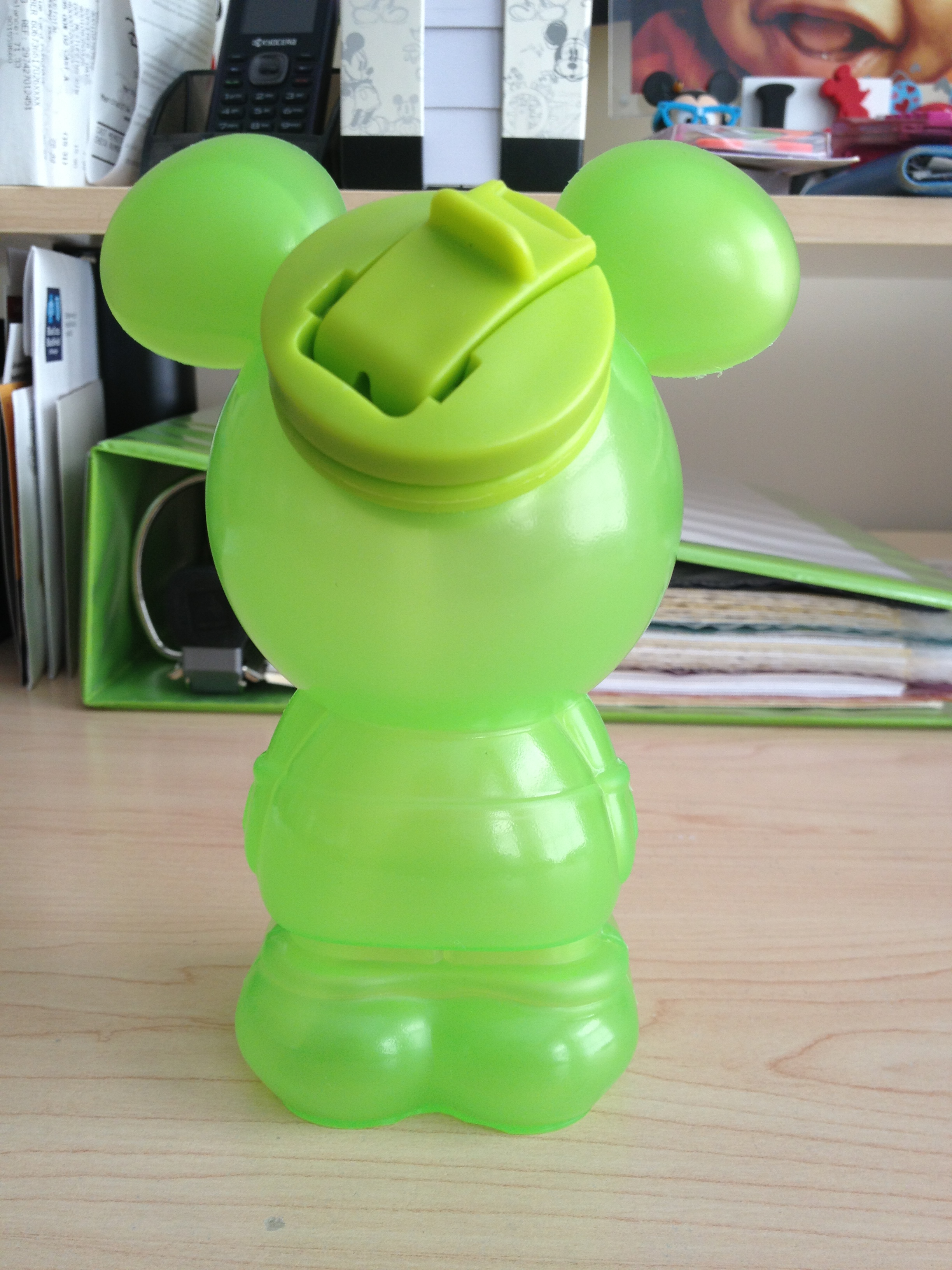 Today’s fabulous find comes from the Emporium at Magic Kingdom. I saw a picture of these water bottles on Instagram and knew I wanted one. I bought a green one for me and a blue one for my nephew. The receipt lists it as “Mickey Mouse Character Bottle”. The bottle retails for $4.95.