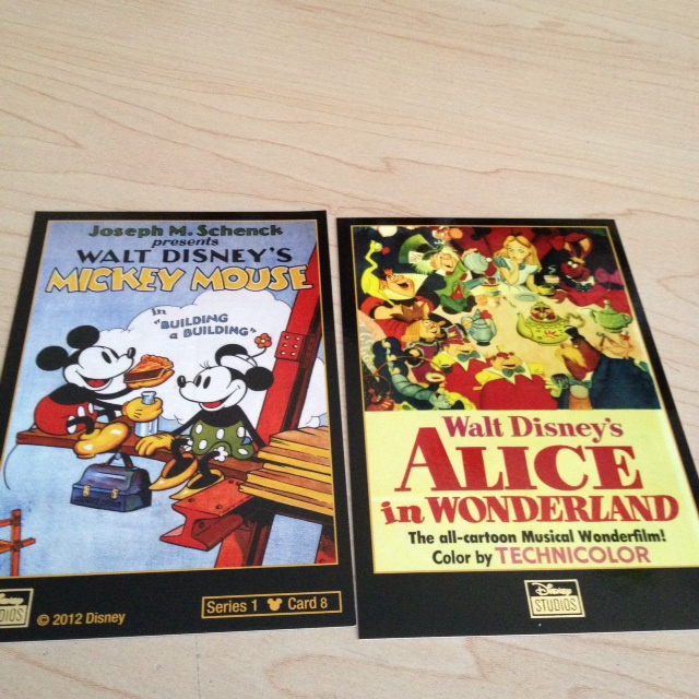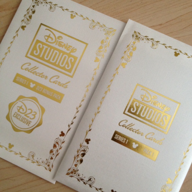 Today’s fabulous find is Disney Studios Collector Cards . I first learned of these cards by scrolling on the D23 official website. The cards were described as “an oversized 3″ x 4.5″ and branded with a gold-foil Disney Studios stamp, and each pack of eight cards includes a limited-edition, individually numbered mini-lithograph, a sericel-inspired translucent card. Walt Disney Archives Director Becky Cline shared fascinating facts pulled directly from the Archives for the “Behind the Scenes with Becky Cline” cards found in each pack.”