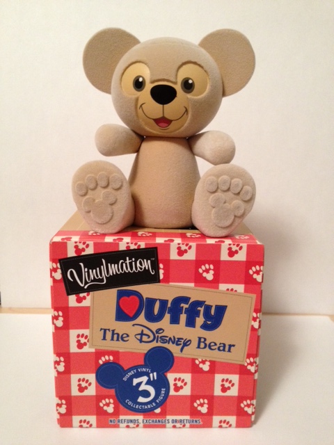 Today’s fabulous find is the 3” Duffy Vinylmation. Any Vinylmation is a fabulous find right? I was hesitant at first to purchase one due to Vinylmations are to be in the shape of Mickey Mouse in my world. I must say I was surprised at how cute it was with the details. Duffy was available via the Official Vinylmation Facebook page until a certain date and then became available at Disneyland, Walt Disney World, and DisneyStore.com on 6/29. The 3” Duffy Vinylmation retails for $14.95.