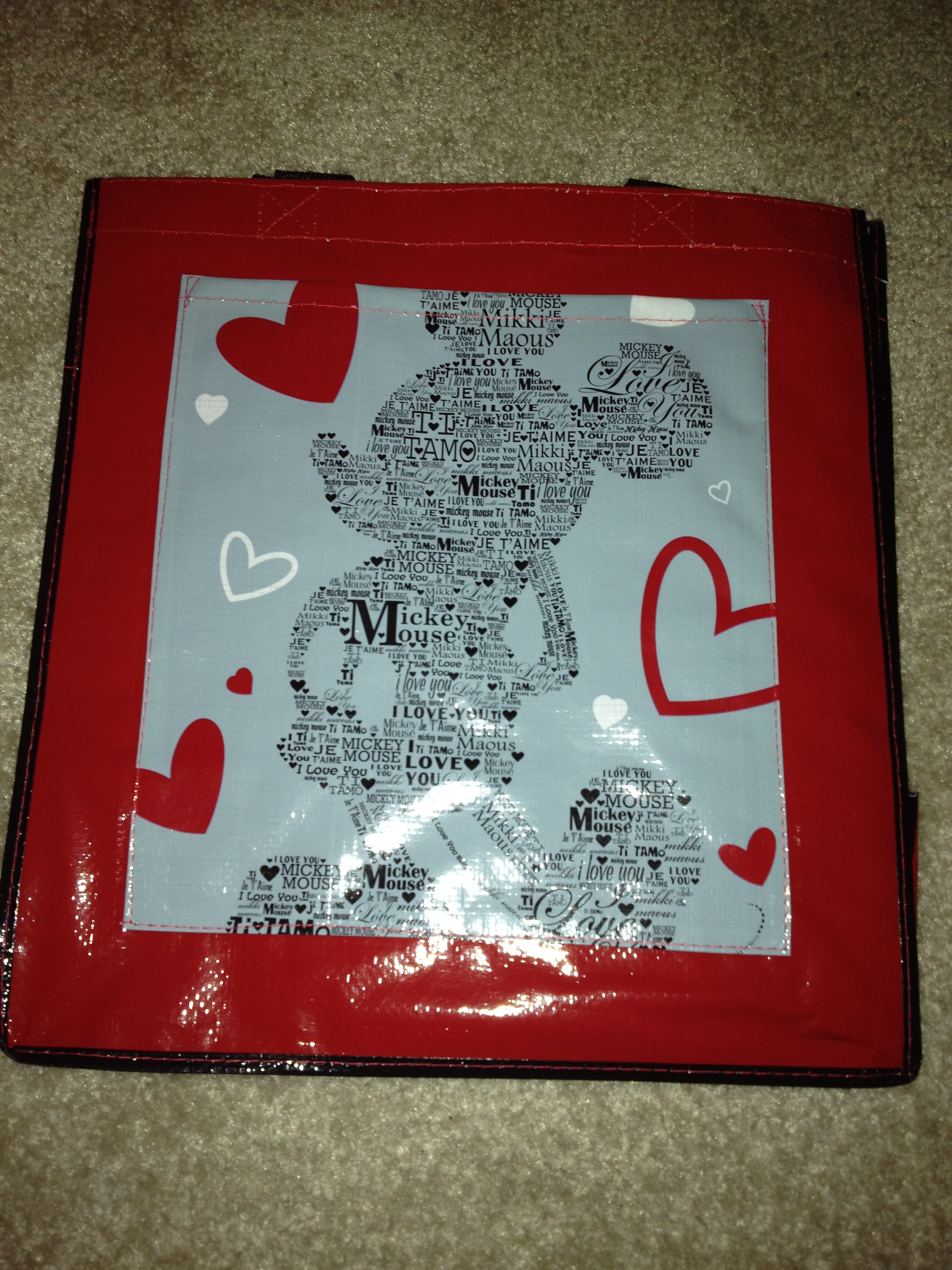 The Fabulous Find Friday item is a reusable Love Mickey Mouse Tote from the Disney Store. I do like using reusable totes to help the environment of course and the totes are fun to carry around. The outside pocket can be used to hold a notebook or your coupons when shopping. This tote can be found at the Disney Store and DisneyStore.com. The tote retails for $3.50. Shown below are front and side views.