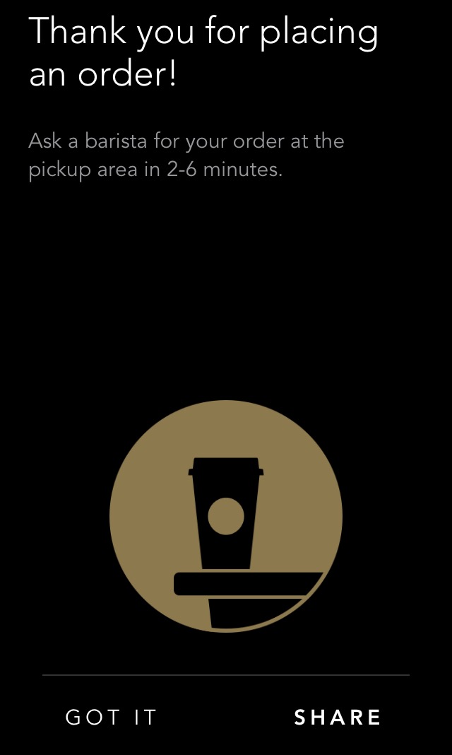 Next was a screen telling me the estimated time my drink would be ready, which was 2 to 6 minutes.
