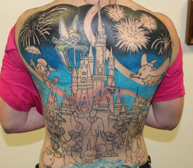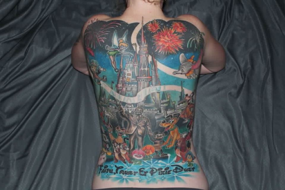 I love showing my love for Disney through art. I am able to carry my favorite place in the world with me every day! I love when people approach me in the parks to ask about my tattoos and take pictures of my back piece. My tattoos represent who I am and what I love and I am very happy to share my love of Disney!