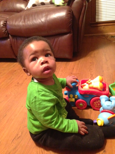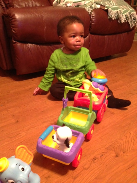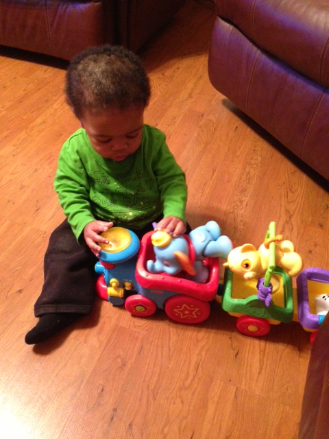 I recently celebrated my first birthday and I received some great gifts. One of those gifts was the Fisher Price Disney Baby Amazing Animals Choo Choo from my Auntie E. I like to push the Choo Choo all around because it makes lots of sounds and the smoke stack lights up. I think my mom likes it too because she always sings “I Can’t Wait to Be King”. Dumbo, Simba, and Lucky can come out of the train so I can play with them by themselves and put my blocks in the train cars to push around. I give this Choo Choo 2 thumbs up.