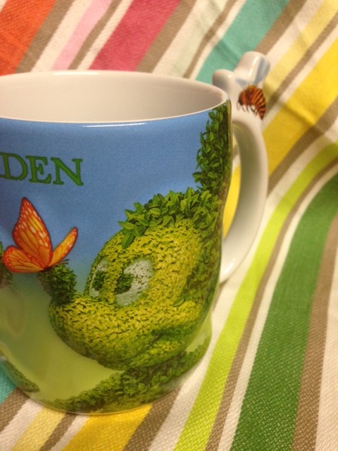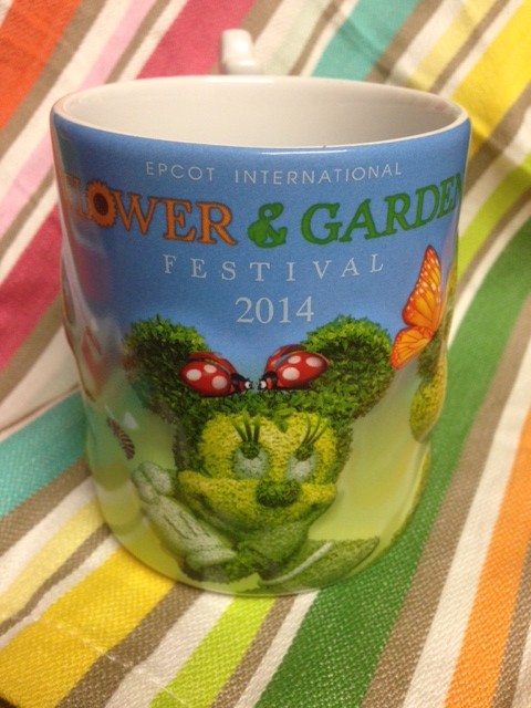 Today’s coffee mug is from the 2014 Epcot International Flower & Garden Festival. The mug retails for $12.95 and can be found at the Festival Center and Festival kiosks. To me this mug helps represents #EpcotInSpring. What do you think?