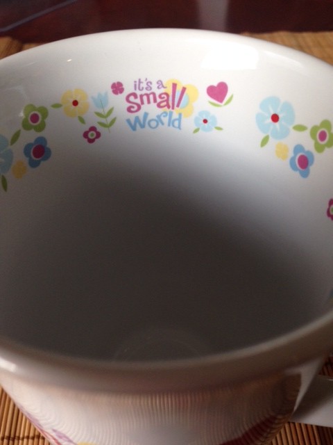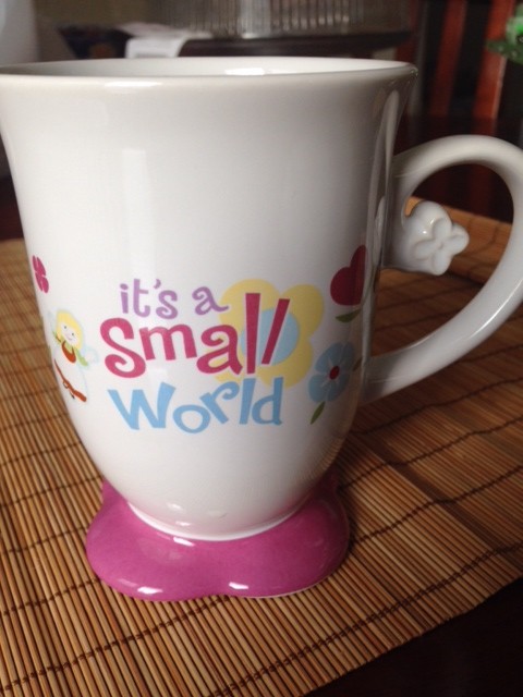 Today’s coffee mug seems fitting for the upcoming anniversary of “it’s a small world”.  My sister, JoVonn (@jhgive), loves this ride and had to have the coffee mug.  The mug was purchased at World of Disney at Downtown Disney in Walt Disney World.  The mug retails for $14.95.