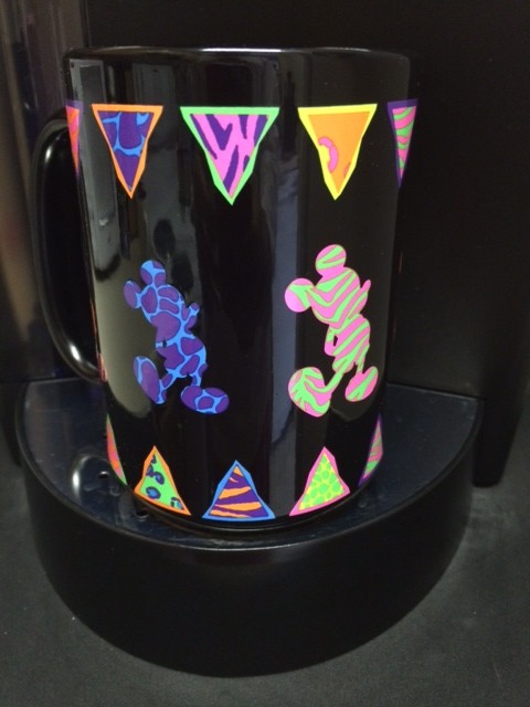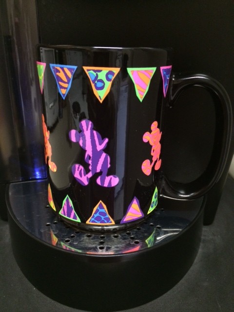 Today’s coffee mug was purchased at the World of Disney at Walt Disney World. I love the colors especially the pink and green. The coffee mug retails for $12.95.
