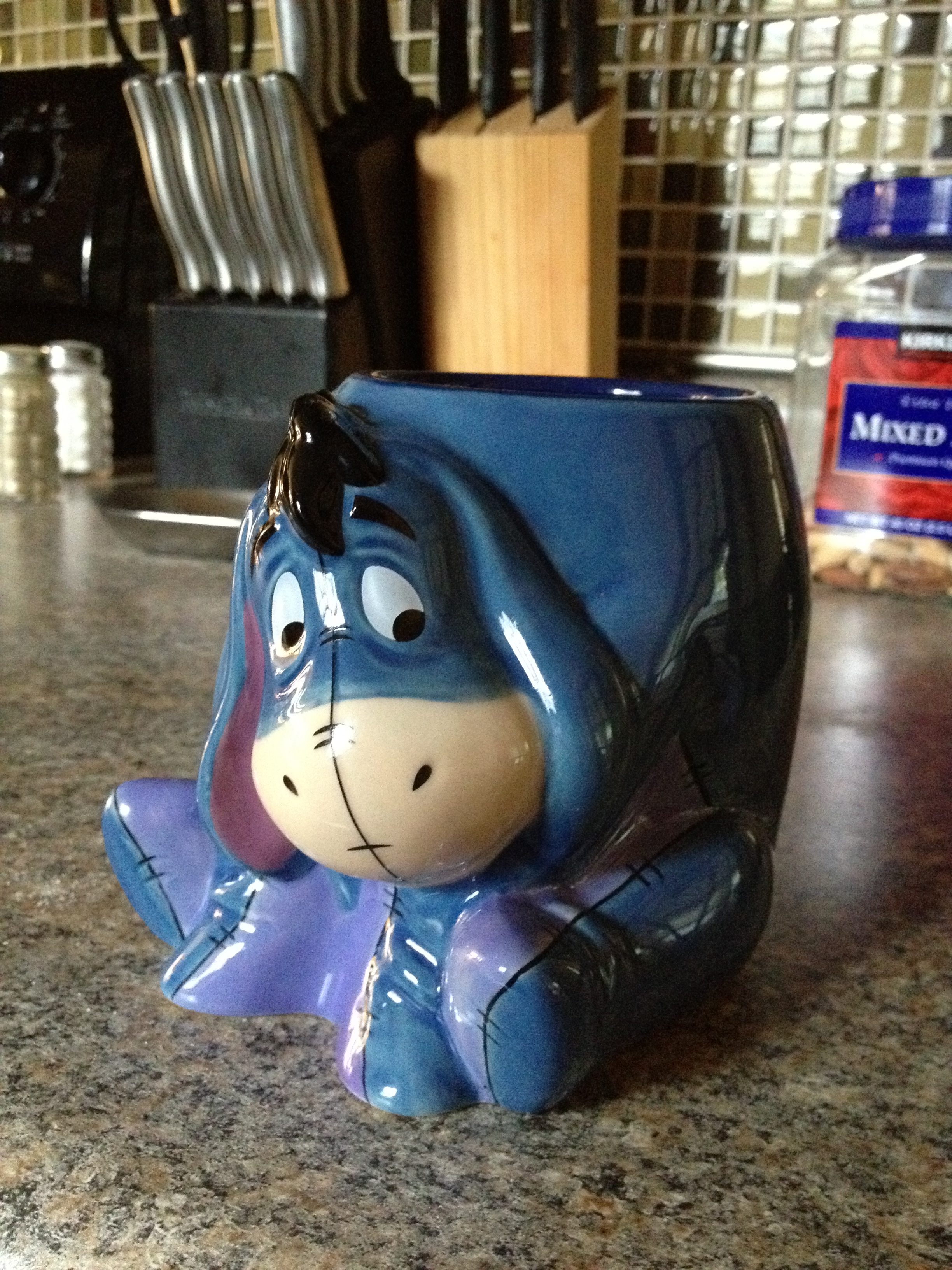 1 Mean Muggin’ Monday Posted on April 16, 2012 by Elantrice H. Today’s mug was a gift for my sister, JoVonn ( @jhgive ). She is a big Eeyore fan. The mug was purchased at The Disney Store and retails for $12.50. Photo Credit: EH Photo Credit: EH