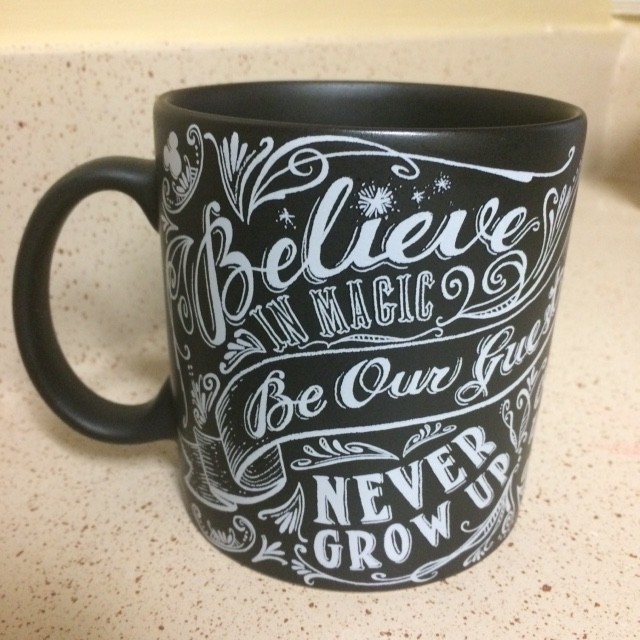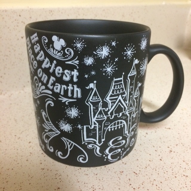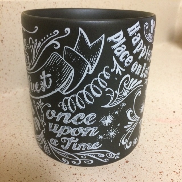 I have been eyeing this mug since last year. It appeared on DisneyStore.com and sold out quickly. I am loving the chalkboard look. The mug was found at the Marketplace Co-Op at Downtown Disney (Walt Disney World). It retails for $14.95.