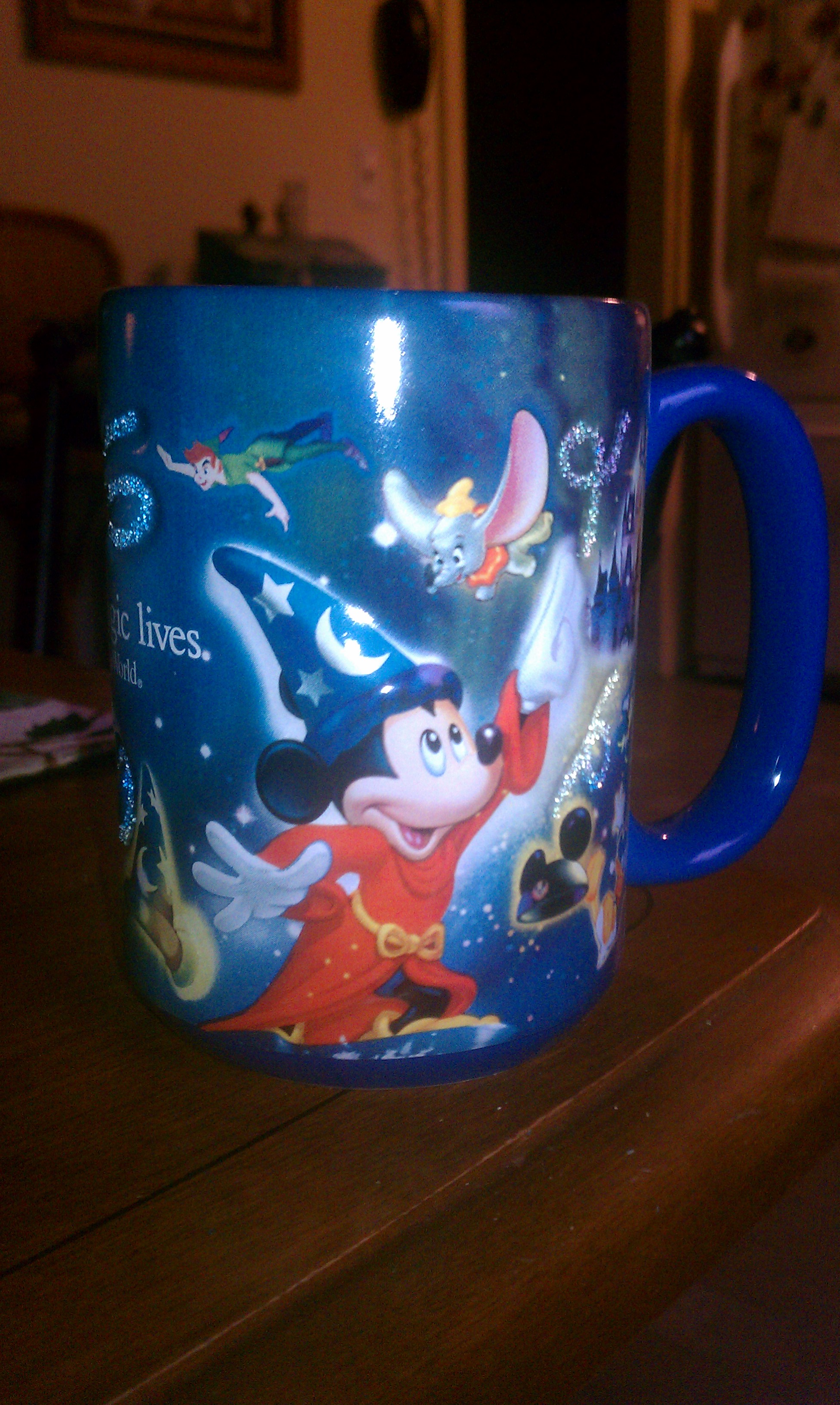 Today’s guest mug is from Dennis ( @oakmanner ). Dennis stated “I got this mug in the Emporium at Magic Kingdom about 4 years ago and paid approximately $12.95”. The quote on the mug says “Where the Magic Lives”.