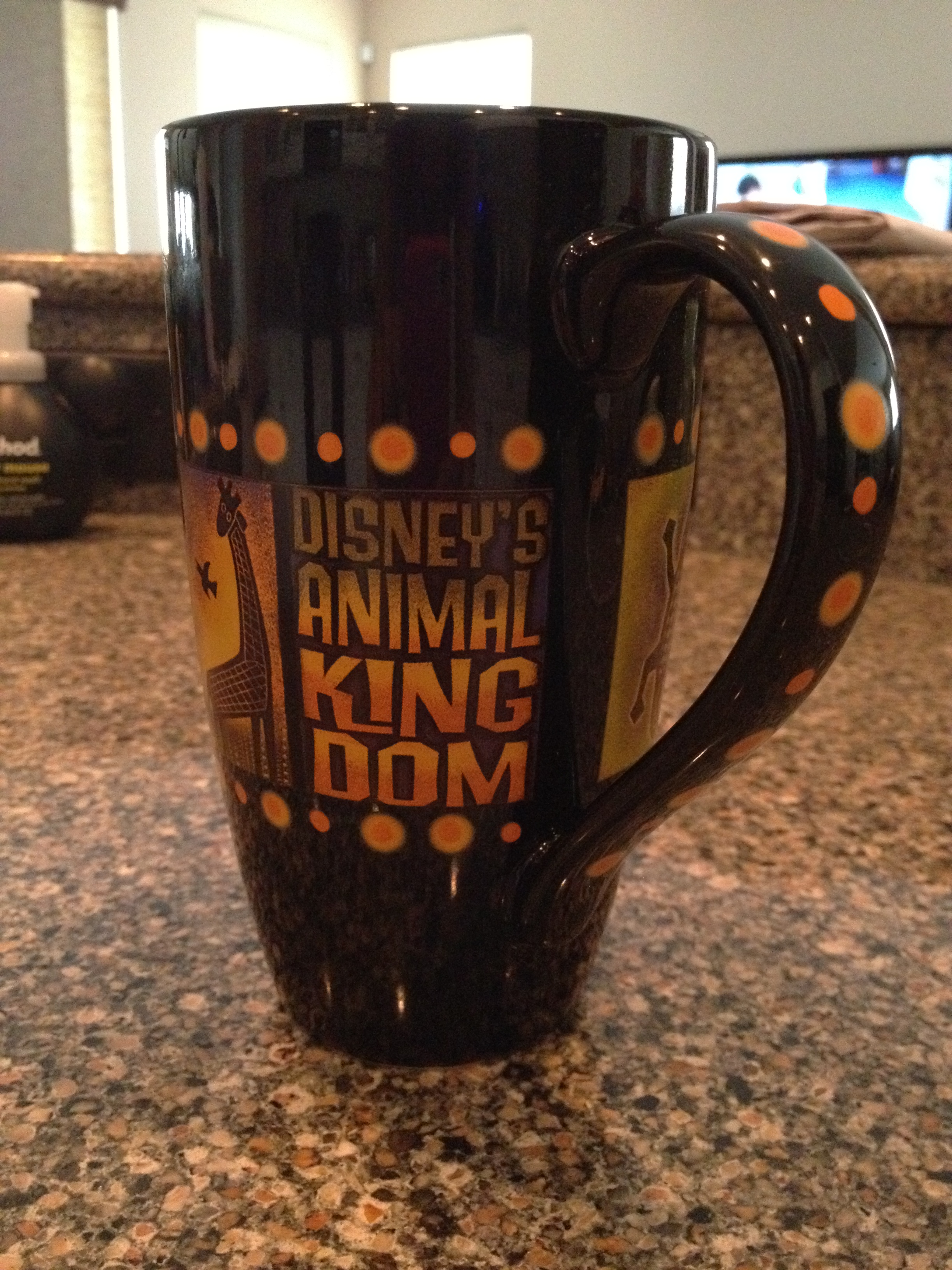 The mug for today comes from Disney’s Animal Kingdom park. I love the dark color and the design. This mug is extra special because it will be only be kept and used at the Florida home of good friends Toni F (@dopey926) and Bob F (@jiminy1231). There is nothing like having coffee with good friends. The mug retails for $12.95.