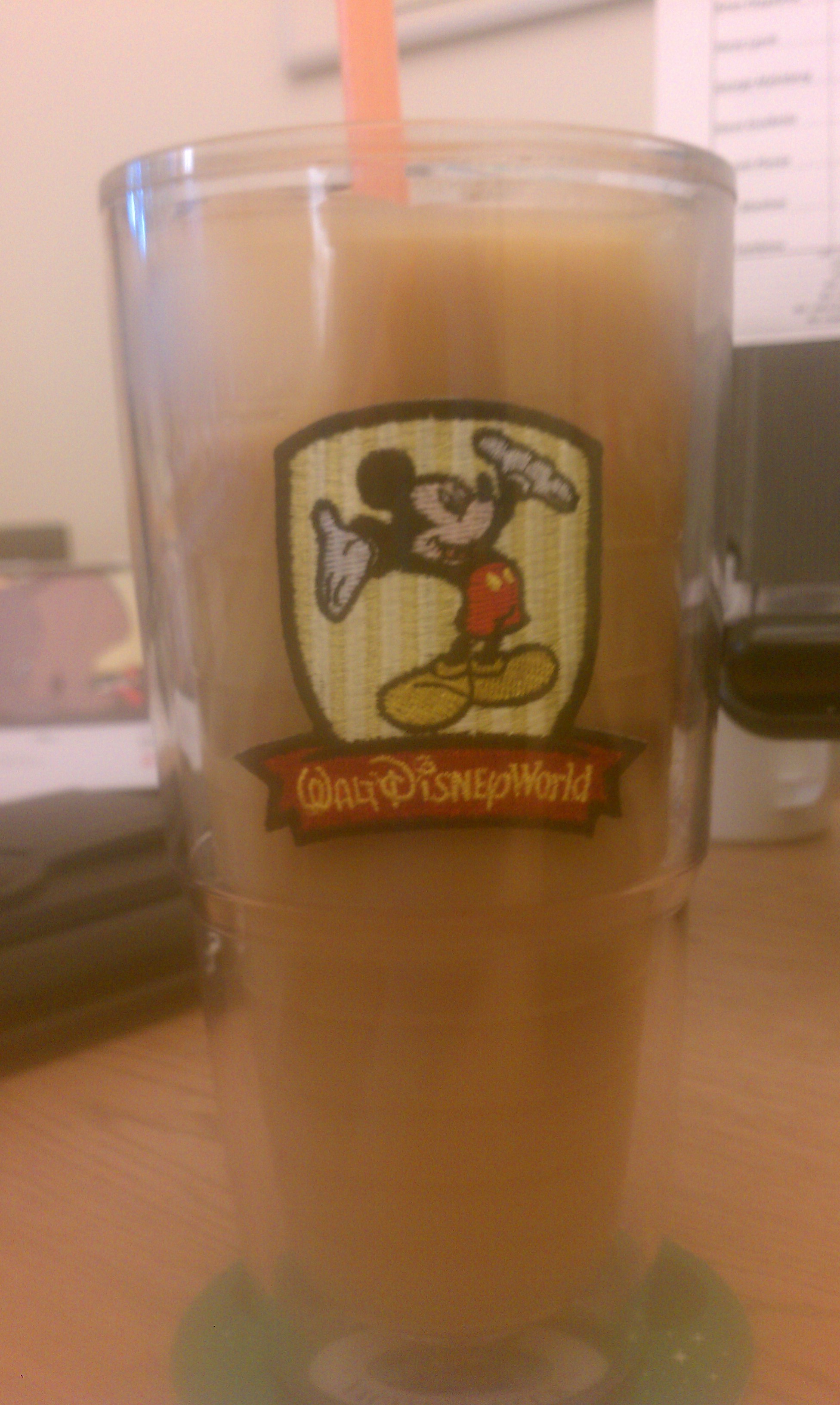 Today’s guest coffee mug is from Dennis ( @oakmanner ).  Dennis stated “I got this in the Emporium two years ago for $19.99! I love this iced coffee (mug) cup! It is insulated and keeps my coffee cold! I’ve looked the last couple trips to WDW but it appears they no longer sell this cup. ”