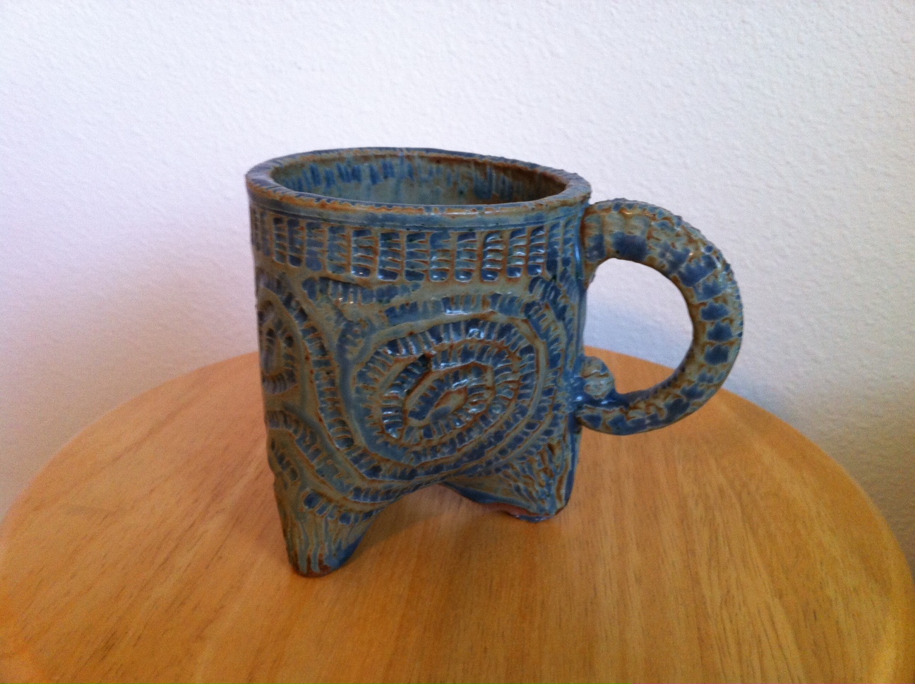 Today’s guest mug was made by Peggi Nadeau, who owns Peggi Nadeau Pottery. She can also be found on Facebook at PN Pottery. Please take a look at the wonderful pieces of pottery she has made. Oh, tell Peggi Diz Thru Brown Eyes sent you.