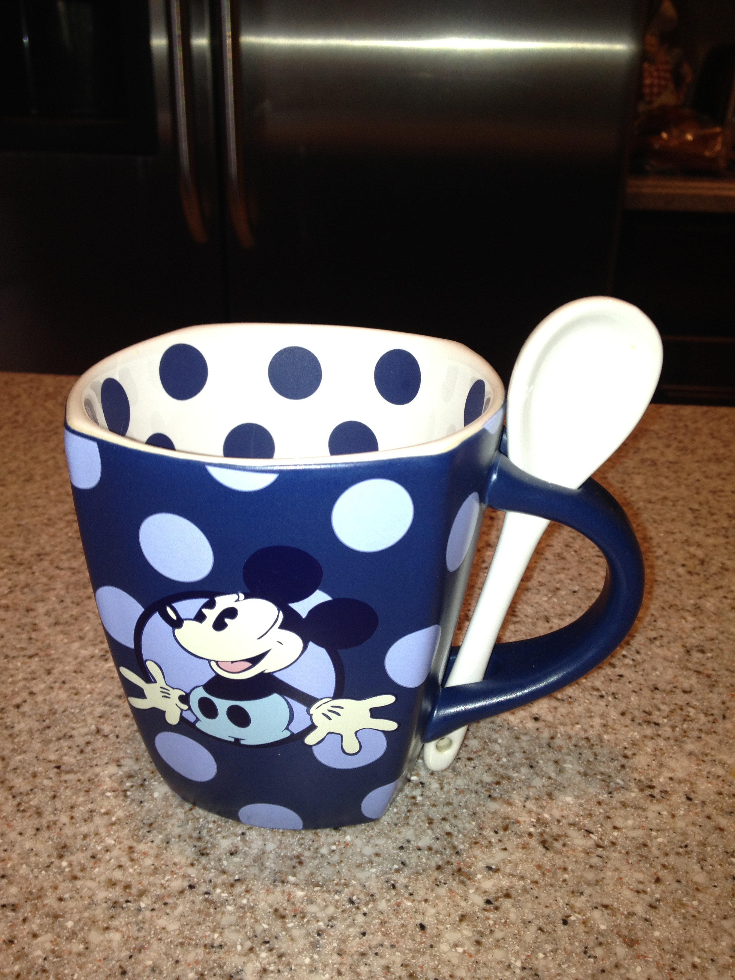 Today’s guest coffee is from John ( @DisneyWorlds ). John stated “As it gets colder, this is a great hot cocoa mug with its own spoon and holder. The attached spoon is perfect for when the chocolate starts to settle at the bottom and you can mix it right up again.”