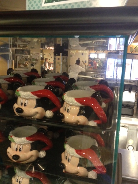 Today’s mug comes from Pop Century resort at Walt Disney World. On my way to get lunch at Everything Pop Food Court, I saw these Mickey Mouse Holiday mugs that you can get ice cream in. The mug retails for $7.19.