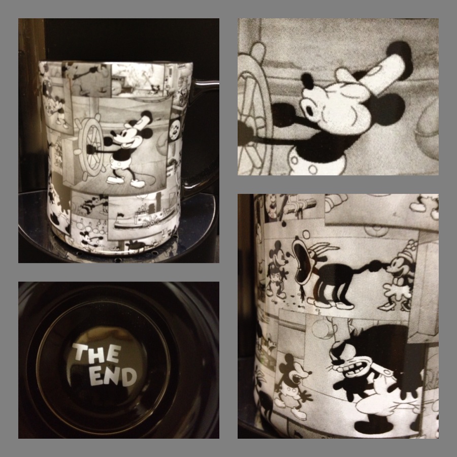 Today’s mug comes from the Disney Store. It caught my eye due to it being in black & white and with Steamboat Willie on it. The mug retails for $12.95.