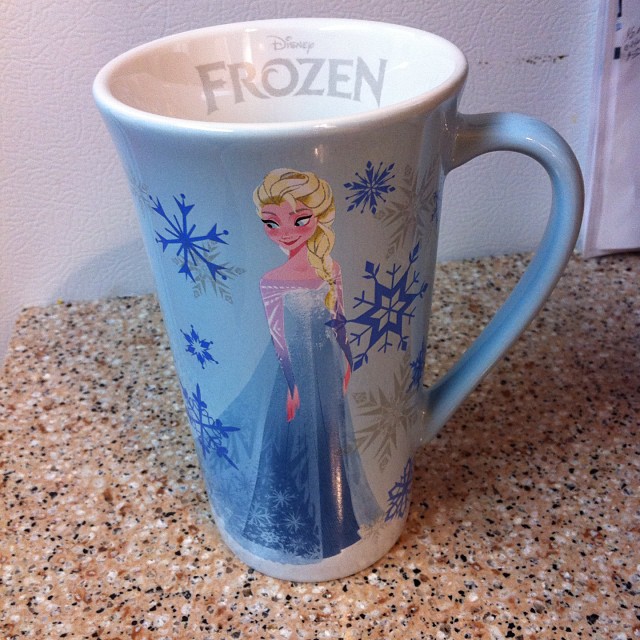 Today’s guest coffee mug is from Dana H. (@TheDragynsLair), the owner of The Dragyn’s Lair. Dana stated “Here is my brand new Frozen Elsa mug! I am obsessed with the film and wanted to own some merch before it sold out.” I do agree with Dana in that the Frozen merchandise is wonderful.