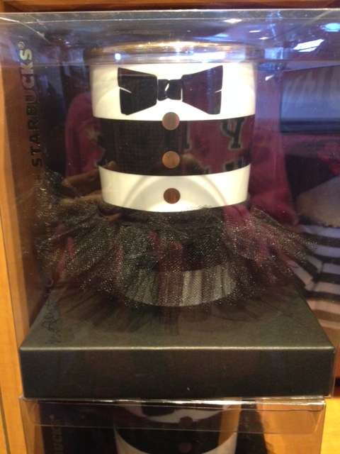 Today’s coffee mug is from Starbucks. It is apart of the Starbucks and alice + olivia Limited Edition Gifts for the Holidays. This tumbler designed by Stacey Bendet even comes with a removable tutu. This ceramic mug holds 12 fluid ounces and retails for $19.95.