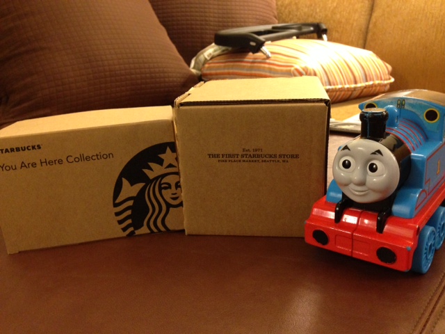 JoVonn stated the mugs are in boxes which is a plus to make taking them home easier. As you can see below Thomas the Train wanted to be in the picture courtesy of my nephew, Jacob.