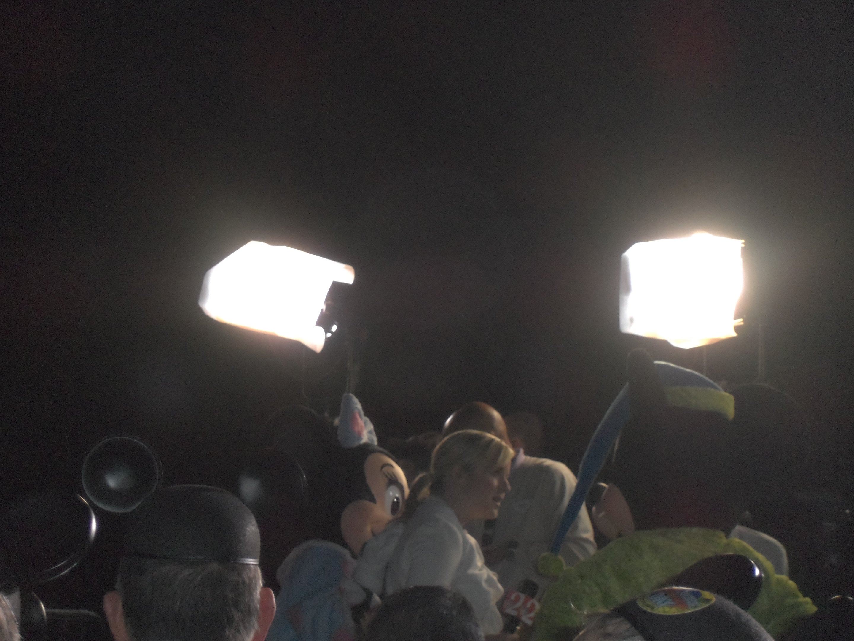 The media event was still taking place when we arrived. In January, I think, Disney emailed a link to Annual Passholder to register for a special pair of One More Disney Day Mickey Mouse Ears. According to the email, the first 1000 passholders to register would receive the ears. I nor several others did not receive the email to register. I found out about the offer after the fact. Once getting in line at the turnstiles, Sara and I observed several people being let into the roped off area to get into the park. Sara went to speak to the Cast Member and waved me over. She explained Annual Passholders were being let into the park to get special event Mickey Mouse ears due to information not being received by all registered passholders. We were given our ears and the event button. There were several people in the area talking and watching Mickey and Minnie, dressed in their PJs, on stage filming for news spots.